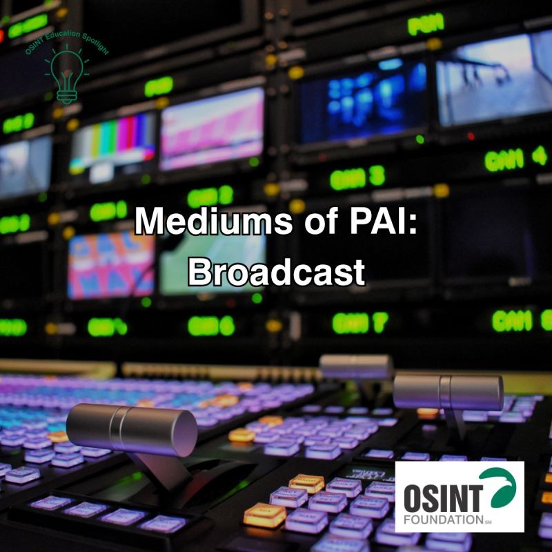 In the context of OSINT, non-internet-based signal or loudspeaker transmission intended for a general audience that must be accessed at the time of transmission using specialized signal reception equipment, or which is audible to the human ear. Broadcast media encompasses, but may not be limited to, analog and digital over-the-air, satellite, and cable transmissions. Examples of broadcast sources include television, radio, ham radio, and loudspeaker.