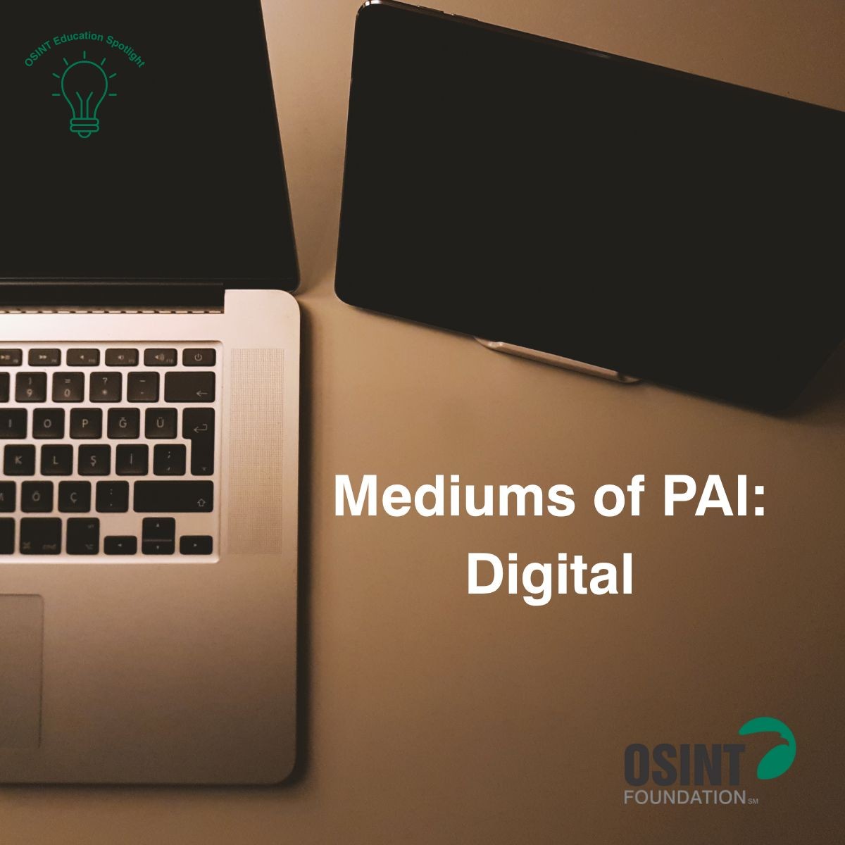 Any data accessible to the public that can be stored and retrieved on a computer whether text, images, sounds or video, as well as immersive virtual environments. The ultimate goal of OSINT exploitation is to convert any observations, hardcopy or broadcast PAI into digital form. Examples of digital media that may be (but are not inherently) PAI include blogs, vlogs, podcasts, webcams, websites, social media posts, public-domain emails, computer files, digital or digitized photographs, 3-D models, digital audio and video (to include streaming), and e-books.